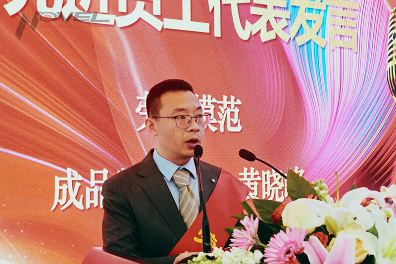王長(zhǎng)春副總經(jīng)理宣讀《2024年度先進(jìn)個(gè)人、先進(jìn)集體表彰決定》。各位先進(jìn)代表在平凡的工作崗位上,堅(jiān)持高標(biāo)準(zhǔn)嚴(yán)要求,兢兢業(yè)業(yè)完成本職工作,用智慧和汗水奮勇打拼,為永新發(fā)展匯聚出磅礴力量。勞動(dòng)模范、成品制造部黃曉峰代表受表彰的先進(jìn)員工發(fā)言。