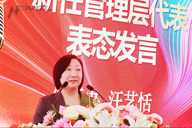 管控組組長(zhǎng)、總經(jīng)理助理孫峻宣讀《關(guān)于2025年中層管理人員聘任的決定》。體系辦經(jīng)理兼管理者代表汪藝恬作為新任管理層代表作表態(tài)發(fā)言。