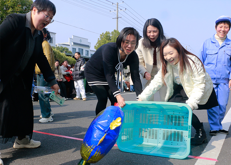 在“小雞進籠”活動中,各組員要克服風(fēng)向等環(huán)境的壓力,合理運用技巧,展現(xiàn)團隊配合,共同將小雞氣球送入籃中。各位女職工各顯其能,指揮方向、擋風(fēng)助力、吶喊助威,現(xiàn)場靈活有序,笑點頻出,氣氛十分熱烈。